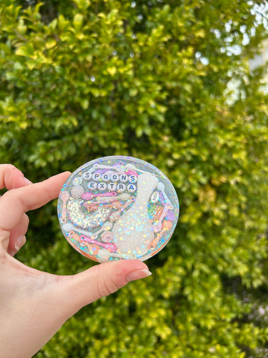 ‘Extra Spoons’ Large Circle Trinket | Design 1